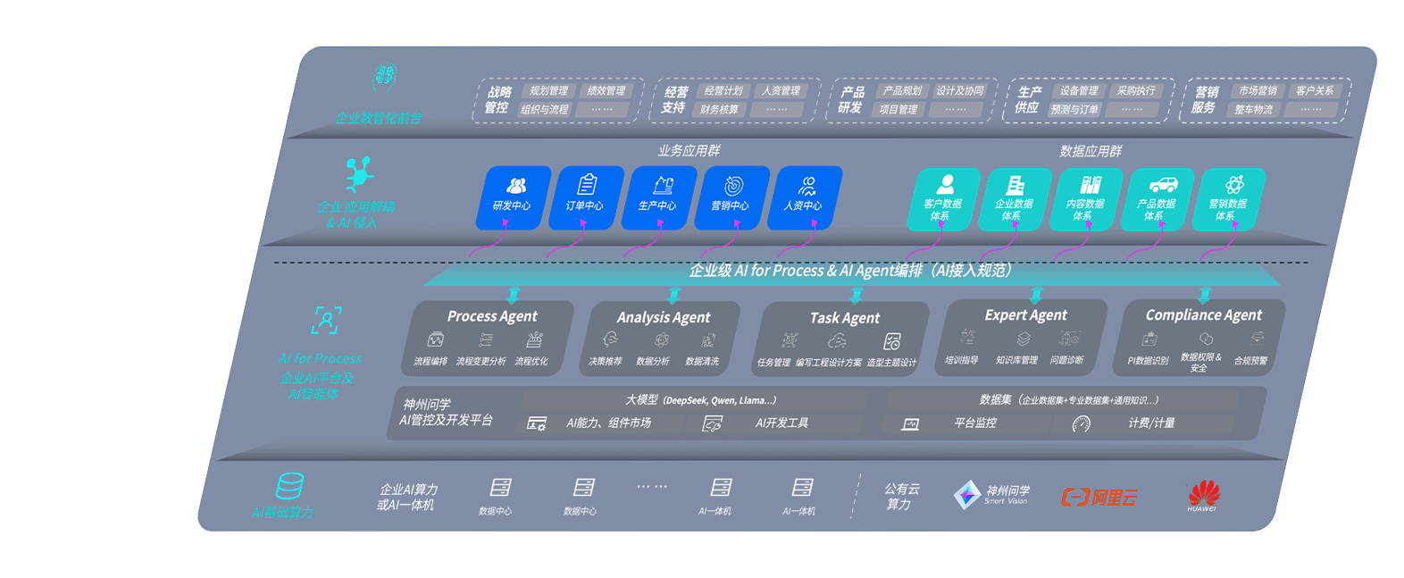 端到端的一站式AI工作空间深度融合了从企业战略规划到日常经营的全流程业务板块,,,,定向解决车企内部领域多、、、部门多、、、、链条长、、、场景碎片化等难题,,,支持车企快速构建以AI为核心的生产力写作体系,,,实现任务执行与AI能力的无缝集成与交互